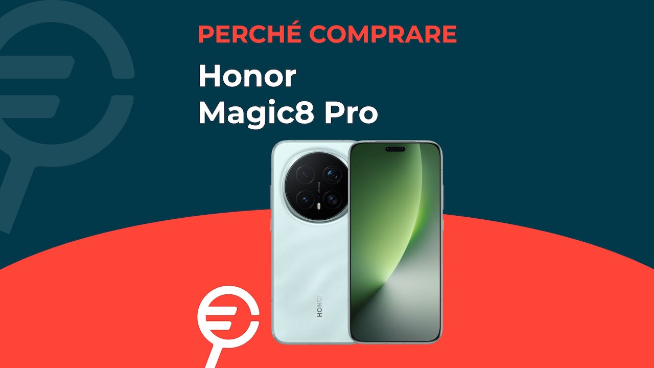 Honor Magic8 Pro è uno smartphone top di gamma che eccelle nelle prestazioni e offre un comparto autonomia tra i migliori sul mercato. Erede dell’Honor Magic7 Pro e fratello maggiore dell’Honor Magic8 Lite, racchiude in un corpo elegante tutte le ultime tecnologie in campo smartphone. Il design di Honor Magic8 Pro comunica una sensazione premium, grazie alle tre colorazioni disponibili: Sunset Gold, Sky Cyan e Black. Il display è di qualità, cioè un OLED da 6,71 pollici con risoluzione Full HD+ e frequenza di aggiornamento che arriva a 120 Hz. Si tratta di un pannello utilizzabile tranquillamente sotto la luce del sole, grazie a una luminosità di picco globale di 1.800 nit e un picco di luminosità in HDR di 6.000 nit. All’interno è presente il processore Qualcomm Snapdragon 8 Elite Gen 5, supportato da ben 12 GB di RAM e 512 GB di memoria interna. Con questa dotazione le prestazioni aumentano del 23% rispetto alla generazione precedente, quindi è anche uno smartphone utilizzabile per il gaming. Grazie alla tecnologia AI Super Resolution, i videogiochi risultano ancora più fluidi, grazie a frequenze di aggiornamento più elevate e un consumo energetico ridotto. Il dispositivo stupisce anche dal punto di vista fotografico. Sul retro è presente infatti una tripla fotocamera con sensore principale Ultra Night da 50 megapixel, affiancato da una fotocamera ultra-grandangolare da 50 megapixel e da un teleobiettivo da 200 megapixel. Sulla zona frontale si vede addirittura una doppia fotocamera, con sensore da 50 megapixel e obiettivo 3D Depth-Sensing. Non mancano tutte le funzionalità fotografiche legate all’intelligenza artificiale, che migliorano le foto notturne e stabilizzano al meglio i video. Sulla cornice laterale si vede anche l’AI Button: se viene premuto si accede a diverse funzioni AI, ma si può anche toccare due volte per accedere direttamente alla fotocamera. Infine, la batteria in silicio-carbonio è da 6.270 mAh, con tanto di ricarica rapida cablata da 100 W e ricarica wireless da 80 W.