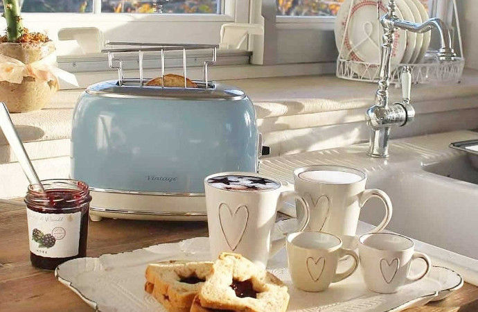 Russell Hobbs Retro è il nome della collezione di piccoli elettrodomestici disegnati e realizzati dall’azienda inglese. Fra i meglio riusciti, ecco spuntare il bollitore Russell Hobbs Retro, disponibile in rosso, nero oppure crema ma sempre con un inserto color acciaio nella parte alta. Dotato di filtro anticalcare removibile e lavabile, ospita fino a 1.7 l d’acqua. E mostra in tempo reale la temperatura attraverso un elegante indicatore con lancetta. Altrettanto curato nelle forme è il tostapane della stessa linea. Perfetto per scaldare e scongelare, ha spazio in abbondanza per due fette di grandi dimensioni.