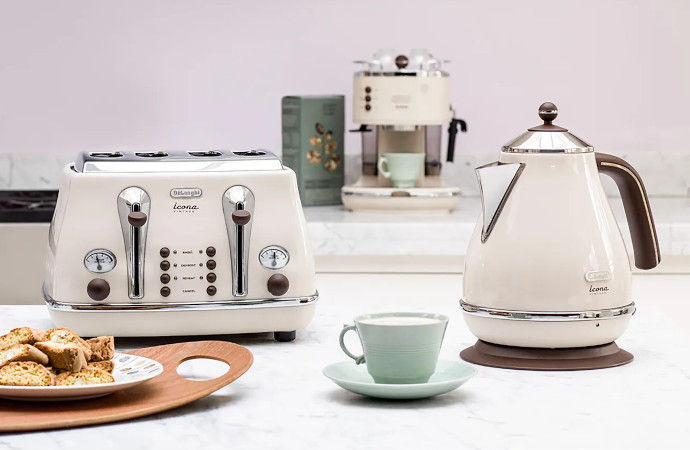 De’Longhi è uno dei marchi italiani più forti quando si parla di macchine da caffè e piccoli elettrodomestici per la cucina. L’azienda propone da sempre prodotti innovativi, intuitivi e molto curati nel design. Non a caso, un’attenta selezione di materiali, finiture e colori contraddistingue molti degli apparecchi De’Longhi, in particolare i modelli della collezione Icona dallo stile elegantemente retrò. Tostapane, bollitore e due macchine da caffè dall’animo vintage: ecco cosa abbiamo scelto per la nostra selezione.