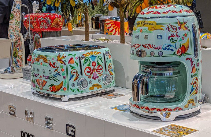Dopo il successo dell’ormai iconico frigorifero Smeg FAB28R, l’azienda italiana ha proposto in chiave vintage anche numerosi piccoli elettrodomestici. Parte della linea Smeg 50’s Style, nascono dalle fruttuose collaborazioni con professionisti del design di livello internazionale. Tostapane, planetaria, frullatore, bollitore: i vari prodotti sfoggiano linee morbide e dettagli cromati capaci di evocare rilassate atmosfere anni ’50. Il tutto condito da tanta tecnologia. Il colore è protagonista assoluto, virando da toni pastello a nuance più vivaci, con finitura lucida od opaca, per arrivare alle decorazioni in stile siciliano dell’edizione speciale Sicily is my love made by Dolce&Gabbana.