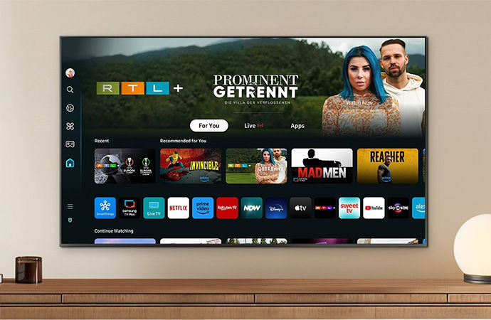 Tizen è un sistema operativo basato su Linux. Presentato su diversi dispositivi, tra cui fotocamere e dispositivi indossabili, dal 2015 è anche il sistema operativo delle Smart TV Samsung. Semplice, intuitivo e veloce: questi sono i tre aggettivi che meglio descrivono Tizen OS, con la Smart Hub come elemento centrale dell’esperienza. La Smart Hub è una barra che raccoglie le funzionalità principali del TV Samsung e può essere facilmente accessibile premendo un tasto dedicato sul telecomando. Scorrendo il menu della Smart Hub, è possibile consultare la guida TV, controllare i programmi in onda e accedere alle app delle piattaforme di streaming. È anche possibile navigare sul web tramite il browser integrato e cercare contenuti utilizzando una barra di ricerca. La Smart Hub consente inoltre di regolare rapidamente le impostazioni dell’immagine, del suono e della connettività wireless. Per operazioni più avanzate, è disponibile il menu tradizionale, che permette di regolare l’immagine in modo dettagliato, equalizzare l’audio, gestire le opzioni di risparmio energetico e sintonizzare i canali. Inoltre, per garantire sempre prestazioni ottimali, i TV Samsung con Tizen OS si aggiornano automaticamente quando connessi a Internet, migliorando continuamente le funzionalità del sistema.