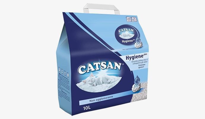 Sabbia gatti Catsan è formata da granuli minerali di colore bianco con pori fini in grado di bloccare batteri e odori sgradevoli. Composta da sabbia di quarzo naturale e calce, si presenta senza polvere. Lettiera 100% naturale, è adatta anche ai gattini. Esiste anche la versione agglomerante (Catsan Natural Agglomerante).