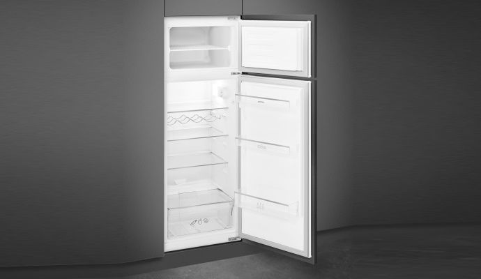 Cominciamo con un frigorifero da incasso firmato Smeg che, nonostante sia un brand di fascia alta, propone anche qualche modello a prezzo contenuto. Uno di questi è proprio lo Smeg D8140E, un apparecchio perfetto per chi non ha necessità di tantissimo spazio per i propri alimenti ma vuole poter contare anche su un vano freezer. Ovviamente, visto il prezzo, si tratta di un apparecchio piuttosto basico, ma comunque efficiente dal punto di vista energetico (consuma solo 232 kWh all’anno) e silenzioso, con una rumorosità di appena 37 dB. Il vano frigorifero ha un’ampiezza di 176 litri, a cui si sommano i 44 litri di volume del vano freezer da 4 stelle, per un totale di 220 litri complessivi. L’interno è ben illuminato dalla luce LED e flessibile nell’organizzazione, visto che ripiani e balconcini possono essere rimossi e spostati su diversi livelli di altezza.