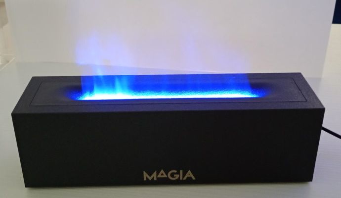 Un modello molto particolare è il diffusore per aromi Montefarmaco Pumilene Home Magia, che richiama nel design quello di un moderno caminetto, sfruttando luci rosse e blu per simulare delle calde fiamme una volta acceso. Anche questo modello sfrutta la tecnologia a ultrasuoni e dispone di due modalità: nebulizzatore con luci, per creare una calda atmosfera, oppure solo nebulizzatore.