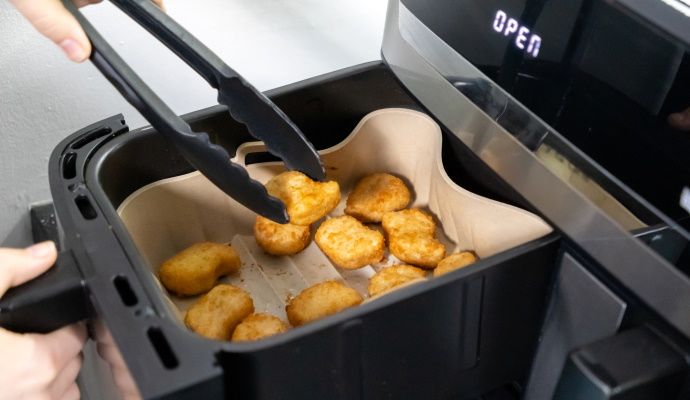 Infine, anche il pollo in friggitrice ad aria si cuoce alla perfezione, soprattutto sotto forma di bocconcini, che poi saranno anche facili da mangiare durante il vostro picnic di Ferragosto perché non richiedono di essere tagliati con il coltello. Teneri e saporiti, potete mangiarli anche freddi, magari accompagnati da insalata, pomodorini e crostini di pane, conditi con succo di limone, erbe aromatiche, sale, pepe e un filo d’olio.