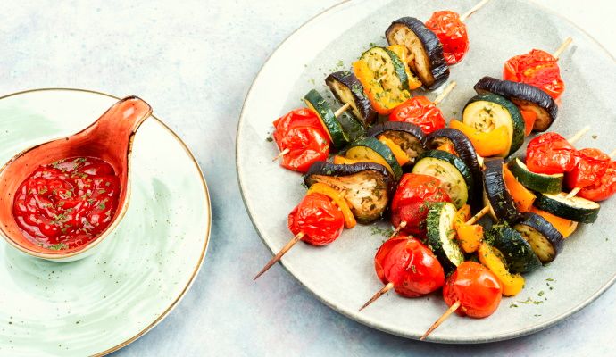 Una buona idea, facile da trasportare e da mangiare anche senza posate, sono sicuramente gli spiedini di verdure: per prepararli è sufficiente tagliare a cubettoni le vostre verdure preferite (di stagione consigliamo melanzane, zucchine e peperoni), cuocerle con un filo d’olio, sale, pepe e origano in friggitrice ad aria e poi preparare gli spiedini, alternando le verdure con pezzetti di scamorza o di mozzarella.