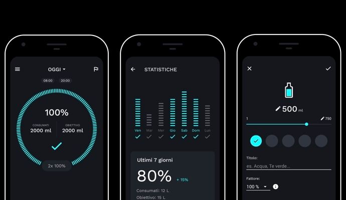 Con un design pulito e numerose funzioni, La mia acqua è una delle app più complete del settore. Il suo punto di forza è il calcolatore automatico del fabbisogno idrico, che si adatta alle caratteristiche personali dell’utente, come peso, età e stile di vita. L’app offre un sistema di notifiche personalizzabili, grafici dettagliati per monitorare i progressi, supporto per Apple Watch e sincronizzazione con Apple Health. Inoltre, la versione Premium aggiunge funzionalità avanzate come il monitoraggio di bevande diverse dall’acqua e premi motivazionali per mantenere alta la costanza.