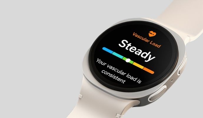 Il cuore del Galaxy Watch 8 non è il fitness da agonisti, ma la salute quotidiana. Il sensore “BioActive” integra monitoraggi classici (battito, ossigenazione del sangue, temperatura, ECG) con due novità: indice antiossidanti e carico vascolare.